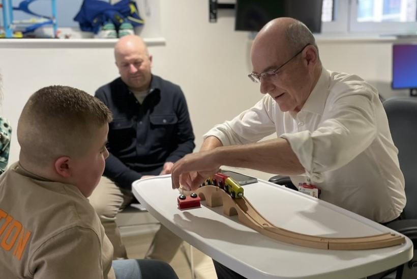 Professor Francesco Muntoni explaining 'exon-skipping' with trains in the NIHR GOSH Clinical Research Facility