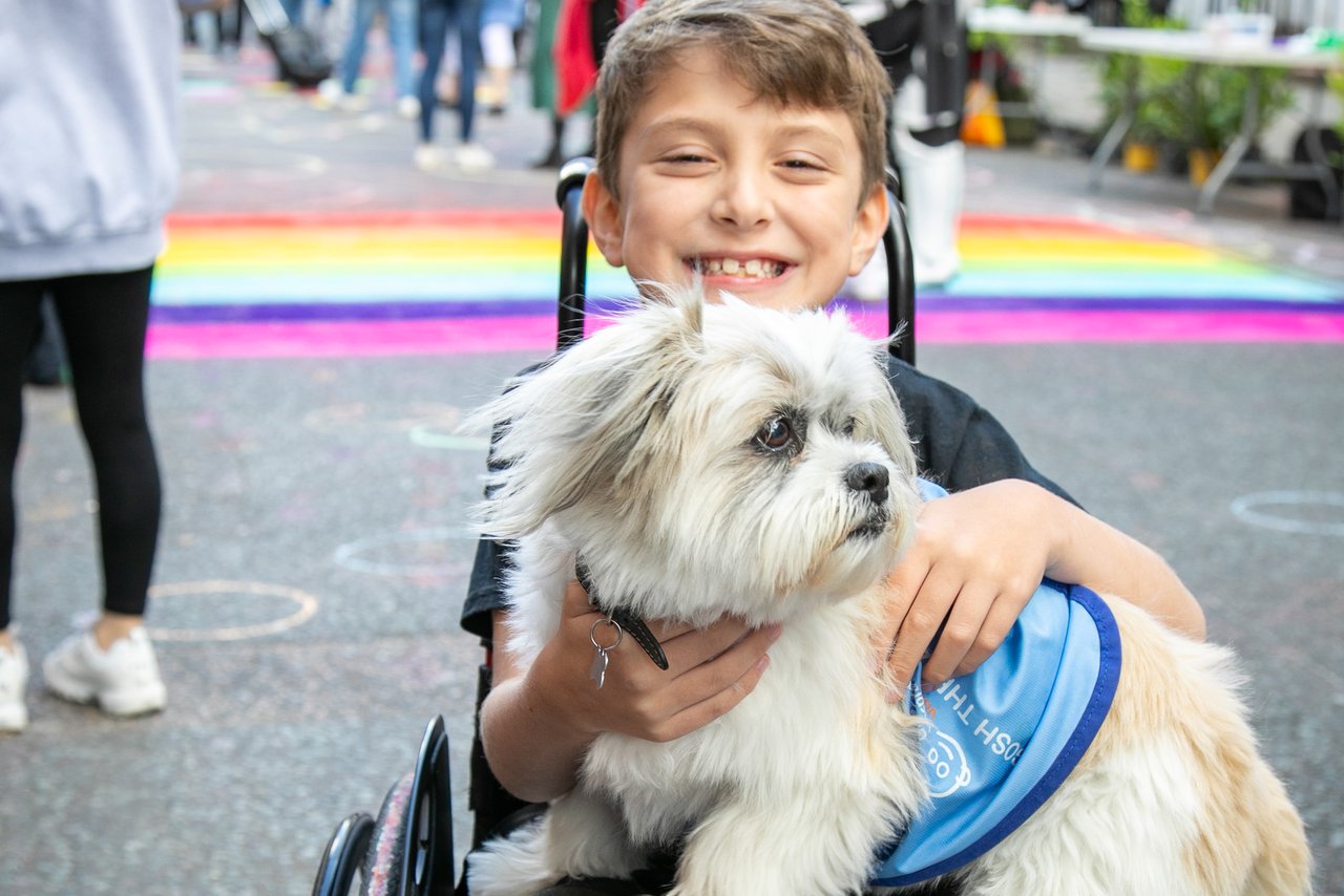 我们搭建了15 个不同的活动和区域,包括色彩鲜艳的充气跳跃赛马场、现场音乐、服务性动物伙伴(包括警犬和猎鹰)以及我们自己的 GOSH 治疗犬,现场的气氛非常活跃。