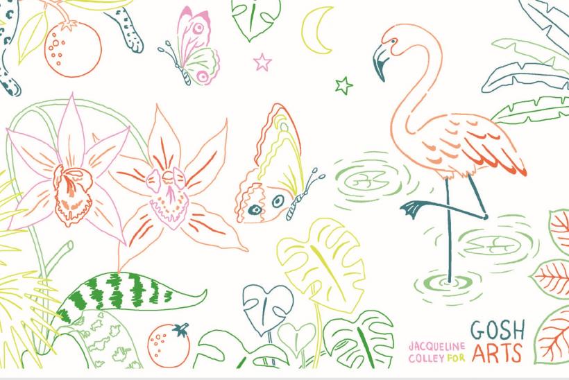 Grab your favourite colouring pencils and pens, and try these tropical colouring sheets designed by illustrator and pattern designer, Jacqueline Colley.