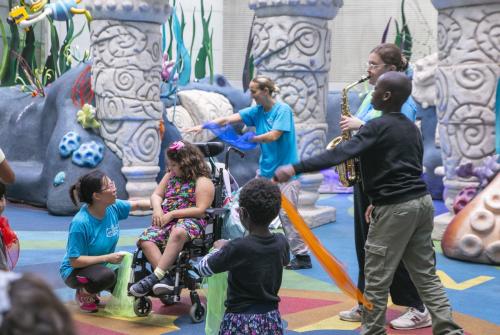 Last week, the Children Cancer Centre programme team transformed the Lagoon area and Disney Reef into a vibrant dance, music, and art hub, creating a special space for our patients and their siblings in honour of Childhood Cancer Awareness Month.